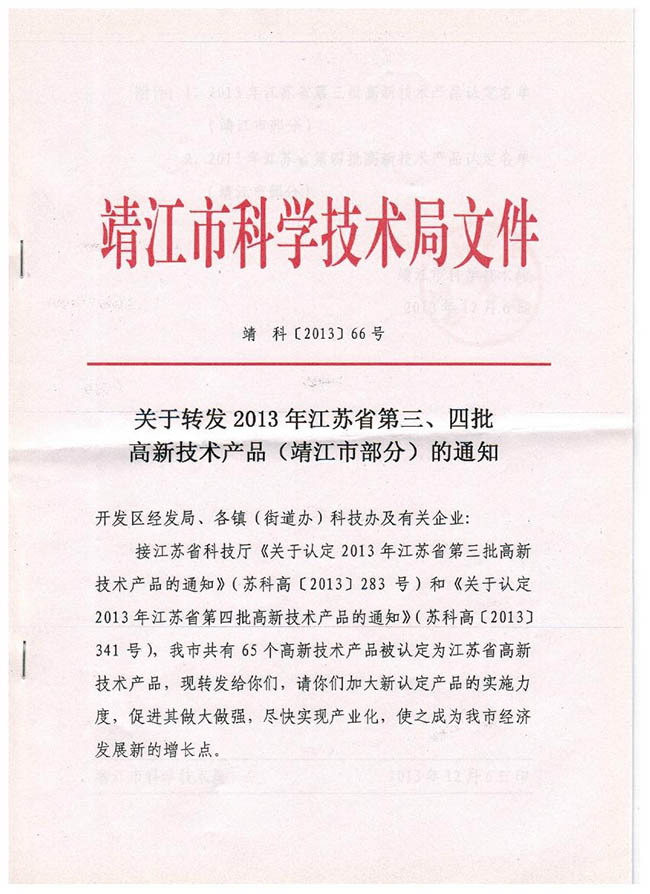 我公司两项产品喜获“江苏省高新技术产品”称号